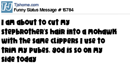 X is i am about to cut my stepbrother's hair into a mohawk with the same clippers I use to trim my pubes. god is so on my side today
