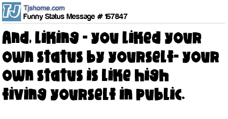 - # 157845 and, liking - you liked your own statuse by yourself- your own status is like high fiving yourself in public.