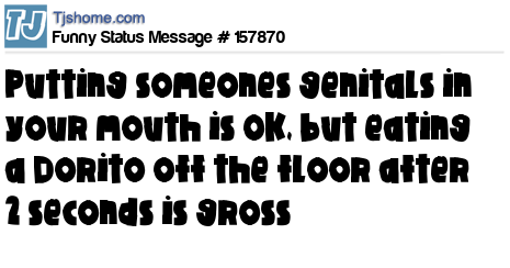 - # 146842 It's cool to put someone else's genitalia in your mouth but if I eat a dorito that I have picked up off the floor I am weird.
