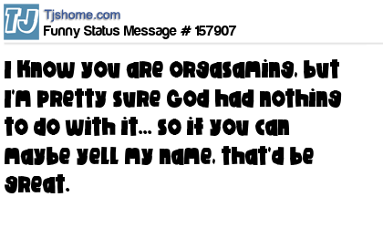 X says I know you are orgasaming, but I'm pretty sure God had nothing to do with it... so if you can maybe yell my name, that'd be great.