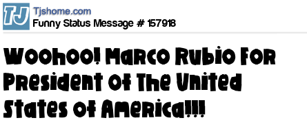 X says Woohoo! Marco Rubio For President Of The United States of America!!!