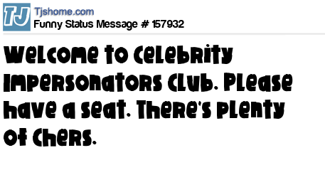 X says Welcome to Celebrity Impersonators Club. Please have a seat. There's plenty of Chers.