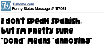 X says I don't speak Spanish, but I'm pretty sure "Dora" means "annoying"