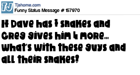 X If Dave has 7 snakes and Greg gives him 4 more,,, what's with these guys and all their snakes?