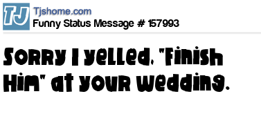 - # 179796 Sorry I yelled "Finish Him" at your wedding last Saturday