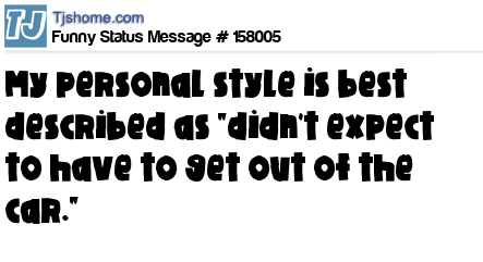 - # 164862 My personal style is best described as "didn't expect to get out of the car."