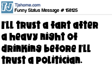 X says I'll trust a fart after a heavy night of drinking before I'll trust a politician.