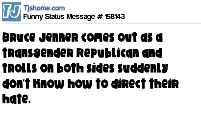 X says Bruce Jenner comes out as a transgender Republican and trolls on both sides suddenly don't know how to direct their hate.