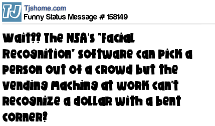 X Wait?? The NSA's "Facial Recognition" software can pick a person out of a crowd but the vending maching at work can't recognize a dollar with a bent corner?