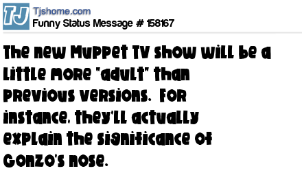 X says The new Muppet TV show will be a little more "adult" than previous versions. For instance, they'll actually explain the significance of Gonzo's nose.