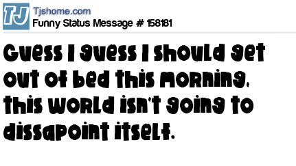 X says Guess I guess I should get out of bed this morning, this world isn't going to dissapoint itself.