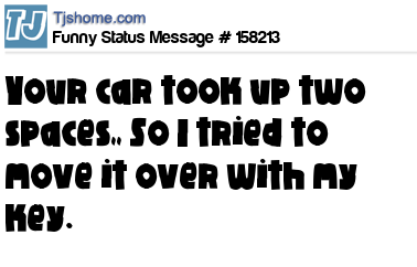 X Your car took up two spaces,, So I tried to move it over with my key.