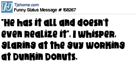X says "He has it all and doesn't even realize it", I whisper, glaring at the guy working at Dunkin Donuts.