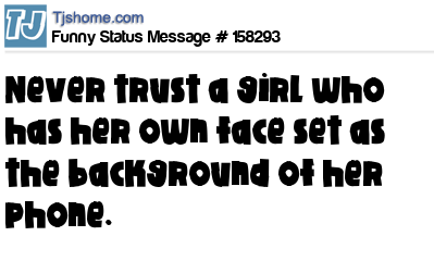 - # 70147 Girls say the only man they can trust is their dad, men say the only girl they can trust is the one they're having an affair with :P