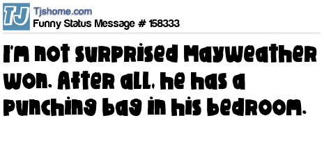 X I'm not surprised Mayweather won. After all, he has a punching bag in his bedroom.