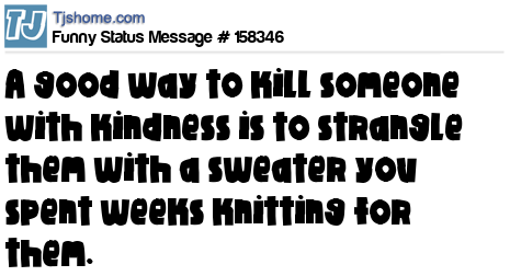 X says A good way to kill someone with kindness is to strangle them with a sweater you spent weeks knitting for them.