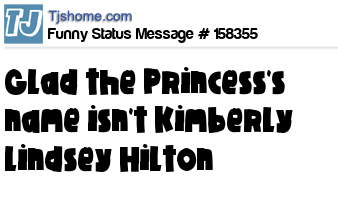 X says glad the Princess's name isn't Kimberly Lindsey Hilton