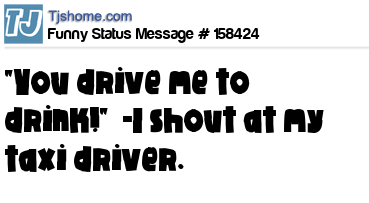 - # 158417 "You drive me to drink!!!" ~Me shouting to the taxi driver.