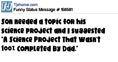 X says Son needed a topic for his science project and I suggested "A Science Project That Wasn't 100% Completed By Dad."