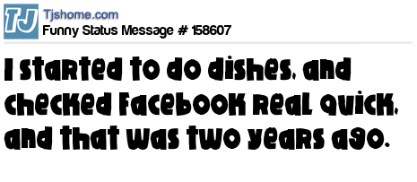 - # 192113 With facebook down I went back to doing those little things we sometimes overlook while it's up, like keeping the dishes from polling up in the sink, folding the laundry on top of the dryer, finishing reading those books I started reading and showering.