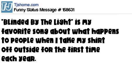 X "Blinded By The Light" is my favorite song about what happens to people when I take my shirt off outside for the first time each year.