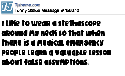 X says I like to wear a stethascope around my neck so that when there is a medical emergency people learn a valuable lesson about false assumptions.