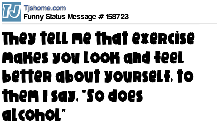 X says They tell me that exercise makes you look and feel better about yourself, to them I say, "So does alcohol"