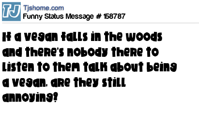 X says If a vegan falls in the woods and there's nobody there to listen to them talk about being a vegan, are they still annoying?
