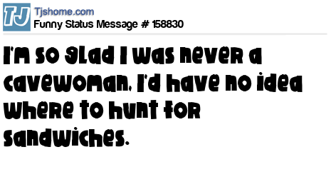 X says I'm so glad I was never a cavewoman, I'd have no idea where to hunt for sandwiches.