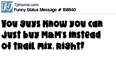 X says You guys know you can just buy M&M's instead of trail mix, right?