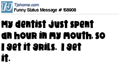 - # 145940 My dentist just spent an hour in my mouth. So I get it girls, I get it.