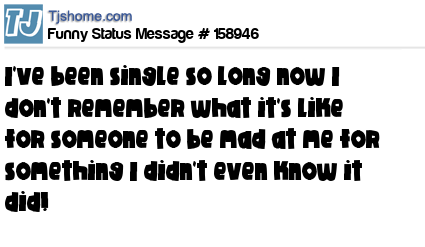 X I've been single so long now I don't remember what it's like for someone to be mad at me for something I didn't even know it did!