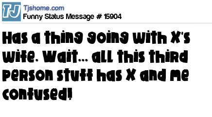 X has a thing going with X's wife. Wait... all this third person stuff has X and me confused!