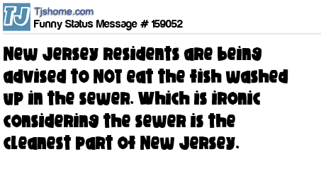 X says New Jersey residents are being advised to NOT eat the fish washed up in the sewer. Which is ironic considering the sewer is the cleanest part of New Jersey.