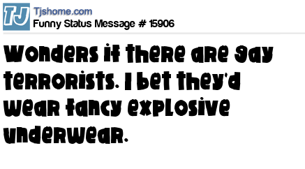 - # 15908 wonders if there are gay terrorists. "Hey, Mr. Embassy man... two snaps ka-boom!"