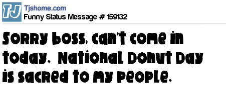 X says Sorry boss, can't come in today. National Donut Day is sacred to my people.
