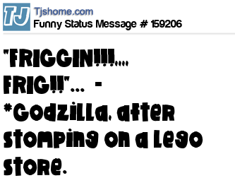 X "FRIGGIN!!!,,,, FRIG!!"... - *Godzilla, after stomping on a Lego store.