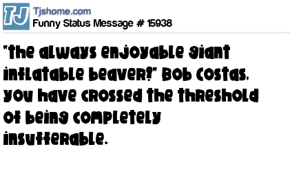 X says "the always enjoyable giant inflatable beaver?" Bob Costas, you have crossed the threshold of being completely insufferable.