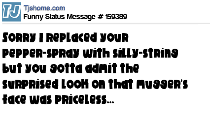 X says Sorry I replaced your pepper-spray with silly-string but you gotta admit the surprised look on that mugger's face was priceless...