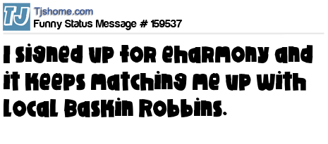 X says I signed up for eharmony and it keeps matching me up with local Baskin Robbins.