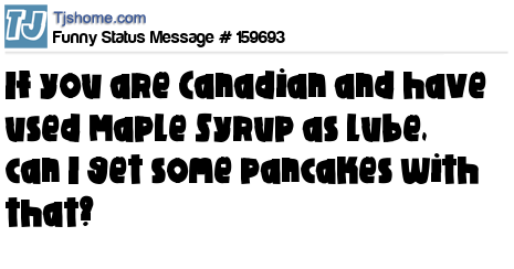 X says If you are Canadian and have used Maple Syrup as lube, can I get some pancakes with that?