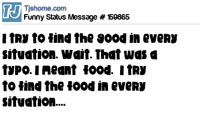 X I try to find the good in every situation. Wait. That was a typo. I meant “food.” I try to find the food in every situation....