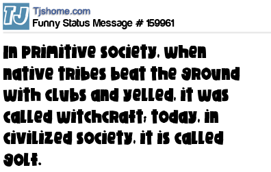 X says In primitive society, when native tribes beat the ground with clubs and yelled, it was called witchcraft; today, in civilized society, it is called golf.