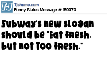 X says Subway's new slogan should be "Eat fresh, but not TOO fresh."