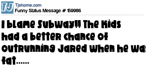 X says I blame Subway!! The kids had a better chance of outrunning Jared when he was fat......