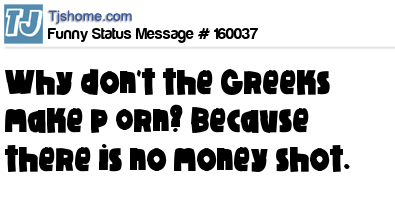 X says Why don't the Greeks make p 0rn? Because there is no money shot.