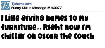X I like giving names to my furniture... Right now i'm chillin' on Oscar the Couch