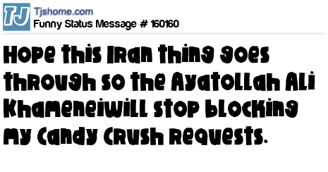X Hope this Iran thing goes through so the Ayatollah Ali Khameneiwill stop blocking my Candy Crush requests.