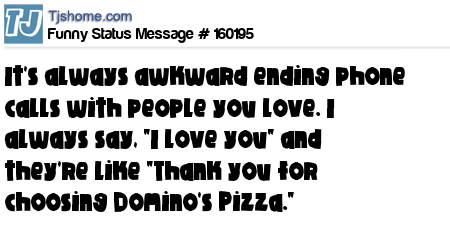 - # 154427 It's always awkward ending phone calls with loved ones. I always say, "I love you" and they're like, "Thank you for choosing Domino's."