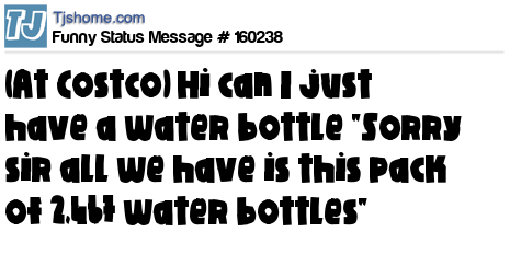 X says (At Costco) Hi can I just have a water bottle "Sorry sir all we have is this pack of 2,467 water bottles"